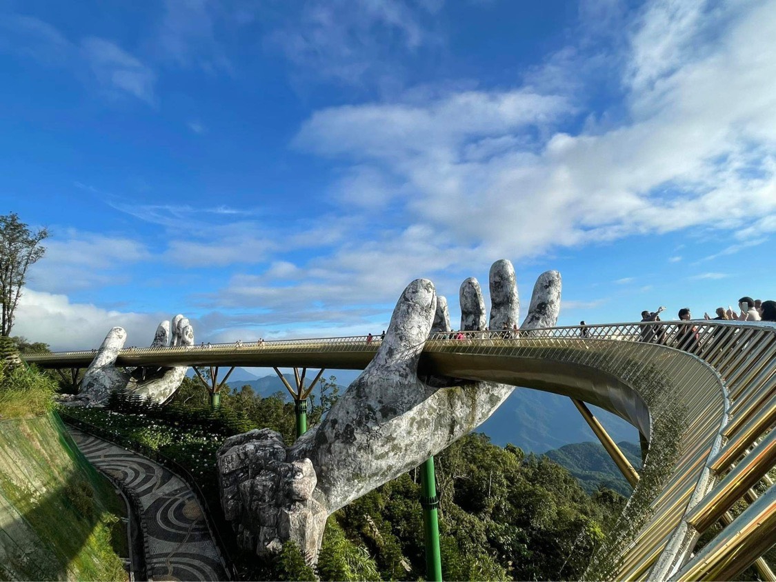 A la hora indicada, les buscaremos en sus hoteles o punto de encuentro para dirigir hacia a las colinas de Ba Na, donde está situado el famoso puente de manos dorados. Llegaremos hasta la estación situada cerca del complejo de Ba Na, que alberga el Puente Dorado o Puente de las Manos, el principal punto turístico del lugar que está ubicada a la altura unos 1.450m. Podréis pasear por esta imponente estructura y, además, visitar los templos de la pagoda de Linh Ung Ba Na, que alberga un buda de 27 metros de altura, aquí donde tendrás la vista magnifica a toda la ciudad de Da Nang.