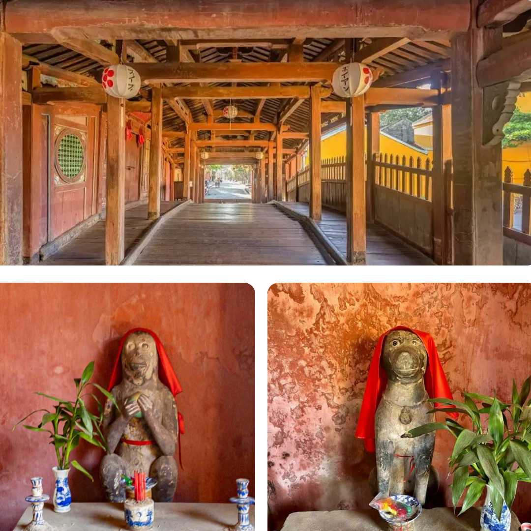 Au cœur du pont se trouve un petit sanctuaire dédié à Huyen Thien Dai De - divinité des eaux dans la spiritualité orientale. Les habitants de Hoi An croient qu’il protège les sources, éloigne les catastrophes naturelles et veille sur la sécurité des embarcations marchandes.