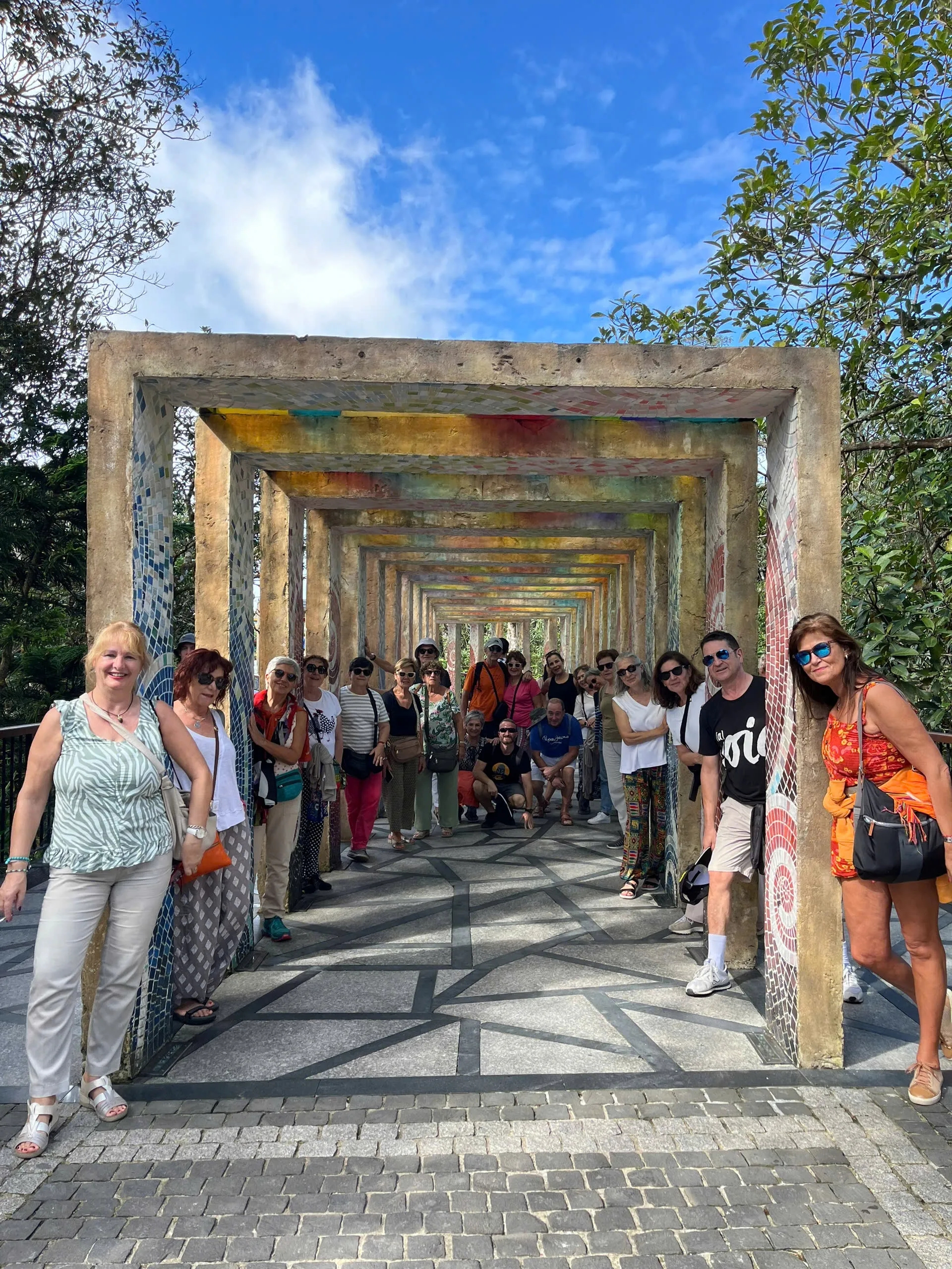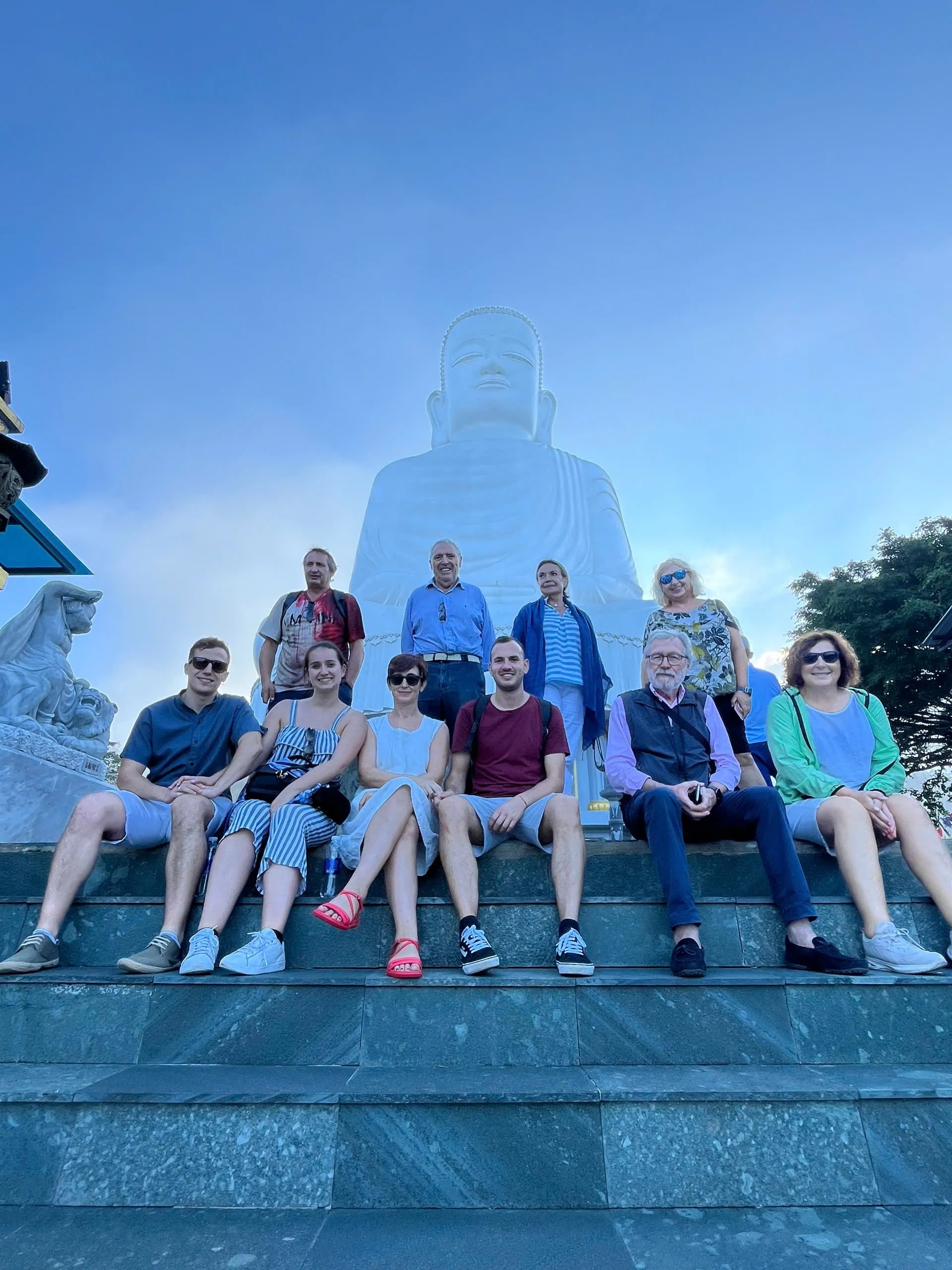 Vers 13h30-14h00, nous viendrons vous chercher à votre hôtel, à votre restaurant dans le centre de Hoi An où vous déjeunez, ou au point de rendez-vous (notre bureau dans le centre de Hoi An, près du pont japonais), puis nous nous dirigerons vers les collines de Ba Na, où se trouve le célèbre Pont de la Main d’Or. Nous arriverons à la station proche du complexe de Ba Na, où se trouve le Pont D'or ou Pont des Mains, l’attraction principale du site, situé à environ 1450 m d’altitude. Vous pourrez vous promener sur cette impressionnante structure et visiter également les temples de la Pagode Linh Ung, qui abrite un Bouddha de 27 mètres de haut, offrant une vue magnifique sur toute la ville de Da Nang.