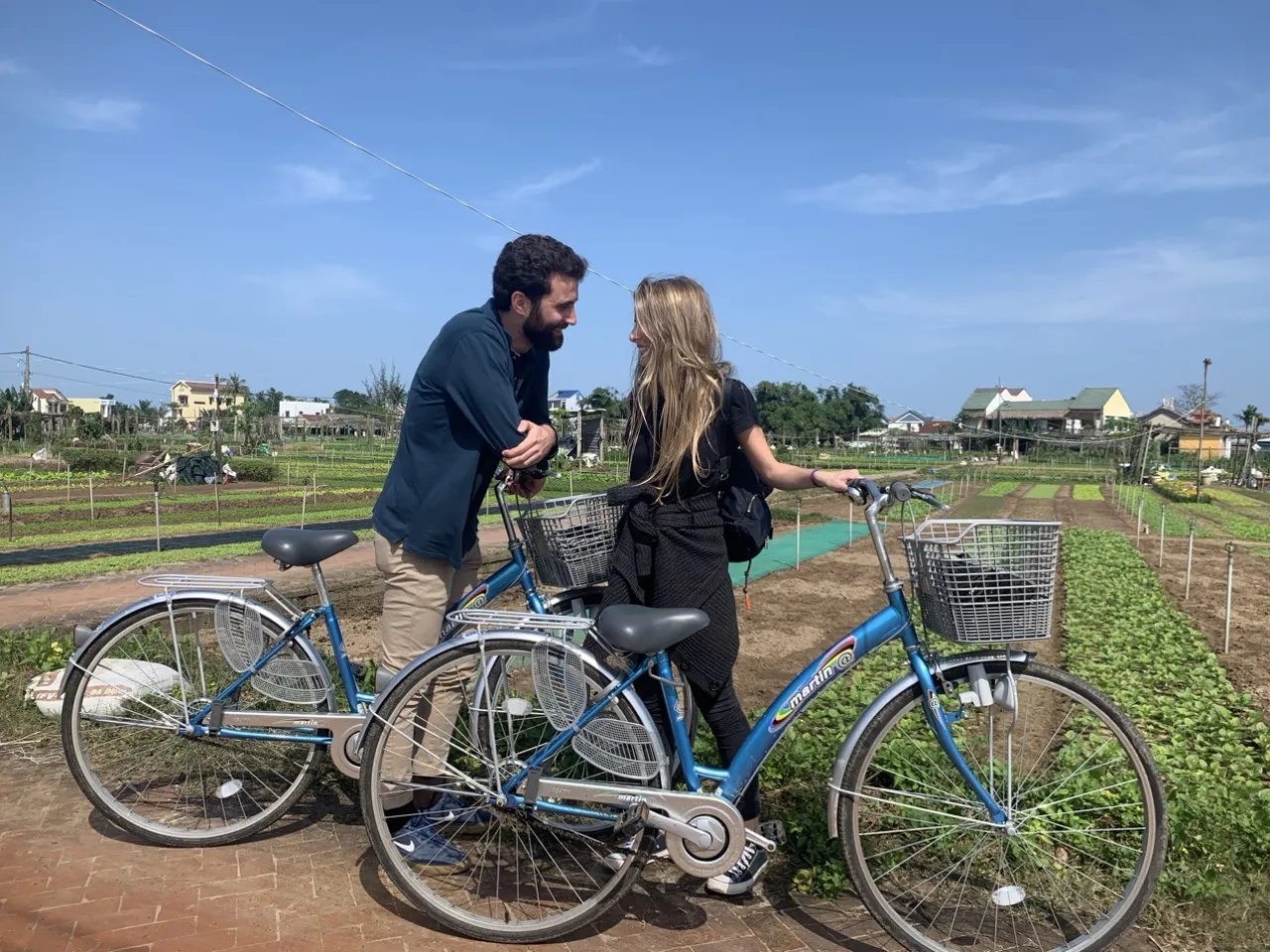 À l’heure convenue, notre guide et nos vélos viendront vous chercher à votre hôtel à Hoi An pour commencer la visite de la ville à vélo. Nous continuerons ensuite vers le village de légumes de Tra Que, un charmant petit village situé à la périphérie de Hoi An, célèbre pour ses herbes aromatiques et ses légumes frais utilisés dans la cuisine locale. Pour y arriver, nous traversons de luxuriantes terres agricoles, des rizières et de petits villages.