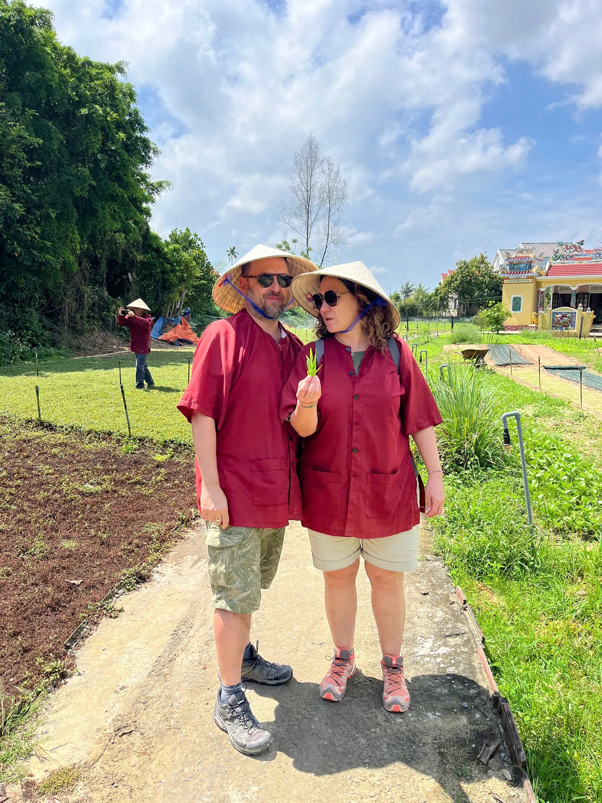 À l’arrivée à Tra Que, vous visiterez les potagers et les jardins d’herbes aromatiques où poussent le piment, la citronnelle, le basilic, la coriandre et la ciboule, tous cultivés sur un sol fertile. Vous participerez aux activités agricoles et découvrirez comment les habitants plantent, entretiennent et arrosent les cultures.