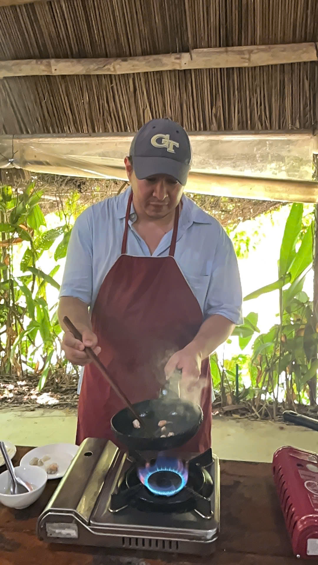 Vous participerez ensuite à un cours de cuisine organisé par une famille locale. Chaque séance commence par une introduction et une démonstration des plats (entrée, accompagnement, plat principal et dessert). Ensuite, vous mettrez la main à la pâte pour préparer votre propre déjeuner typique de Hoi An. Enfin, vous dégusterez vos créations dans une ambiance familiale avec vue sur les habitants travaillant dans les champs. Retour à votre hôtel.