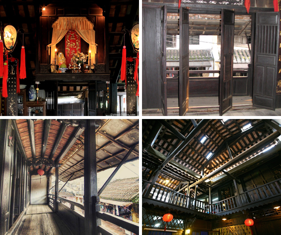 En entrant à l’intérieur, vous êtes immédiatement enveloppé par une atmosphère paisible et empreinte d’ancienneté - en contraste total avec l’animation des rues à l’extérieur. L’harmonie architecturale se révèle dans chaque détail : les fenêtres et les balcons s’inspirent du style chinoise, la toiture centrale adopte le style japonais « quatre mers » (shi kai); tandis que la façade, l’arrière et la charpente en bois reflètent le savoir-faire traditionnel vietnamien. Le plafond élevé et les poutres en bois sont assemblés selon la technique traditionnelle japonaise des tenons et mortaises, sans clou - un témoignage de la maîtrise exceptionnelle de la charpenterie des siècles passés.