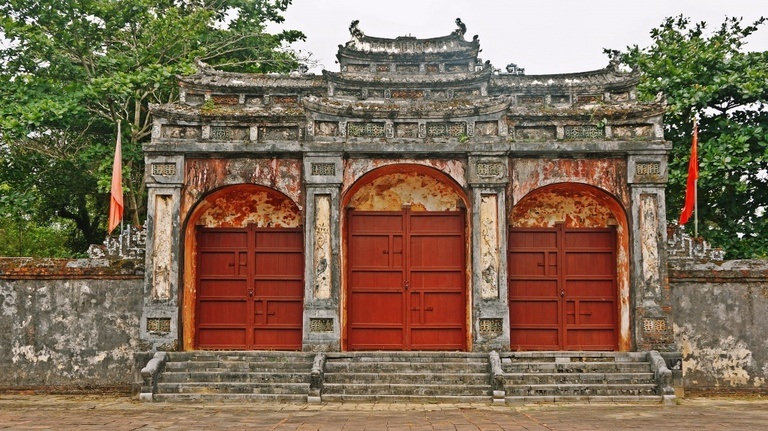 Passing through the imposing Dai Hong Gate, visitors leave the mundane world to enter a sacred realm where heaven, earth and humanity blend as one. Built from deep red Bat Trang bricks, the gate masterfully combines traditional Eastern architecture with Hue’s unique style. Thick, tall walls and moss-covered blue-glazed tiled roofs create a solemn yet welcoming atmosphere.